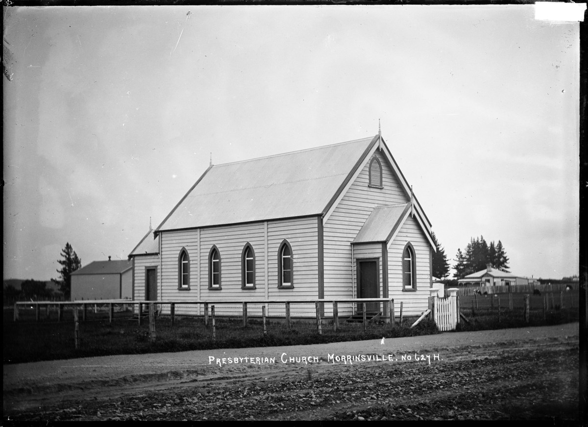 This photo is of the Morrinsville Presbyterian Church built in 1910. Taken in 1916, it has many of the elements of the church in Ohakune. I’m still trying to track down early photographs of the church, so please contact me if you have any old photos I could copy.
